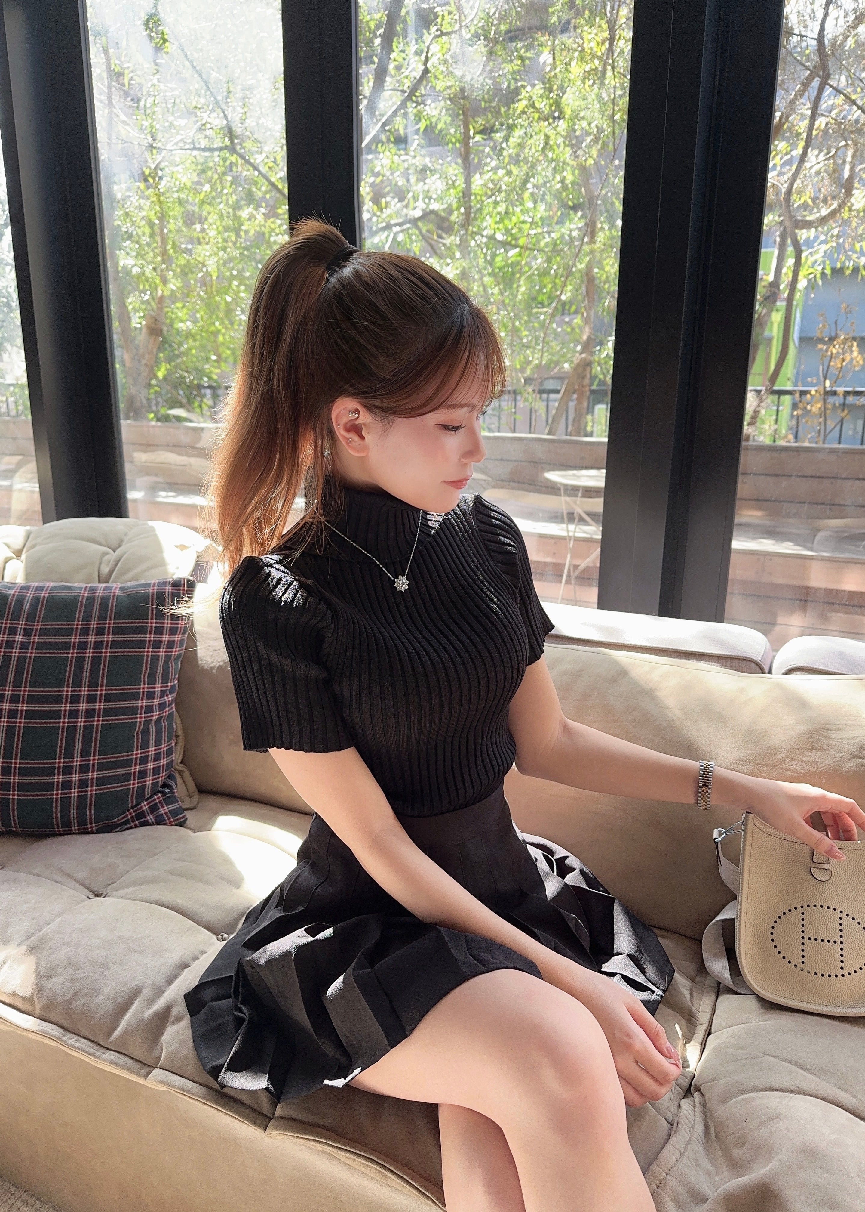 カラー:ベージュ ・ ブラック 素材:ポリエステル サイズ:フリー 身長157cm 着用画像 平置の場合:着丈49cm 袖丈21cm ※かなり伸縮性があります✨ 納期:3営業日以内に発送 【日祝は除く】 ♡point ・サラッとした生地感なので春先まで お使いいただけます♡ ・タートルネックが苦手な方でも半袖なので重たくなりすぎず挑戦しやすいデザインです✨ ・サイドにスリットが入っているのでジーンズなどと合わせてもスタイルアップ効果があります✨ 洗濯方法:洗濯ネットに入れおしゃれ着洗い推奨